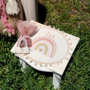 Χειροποίητο βιβλίο ευχών με θέμα αρκουδάκι με πάμπας σε ανάγλυφο υλικό EVA, ξύλινο διακοσμητικό αρκουδάκι, ξύλινες χάντρες και σχοινιά.