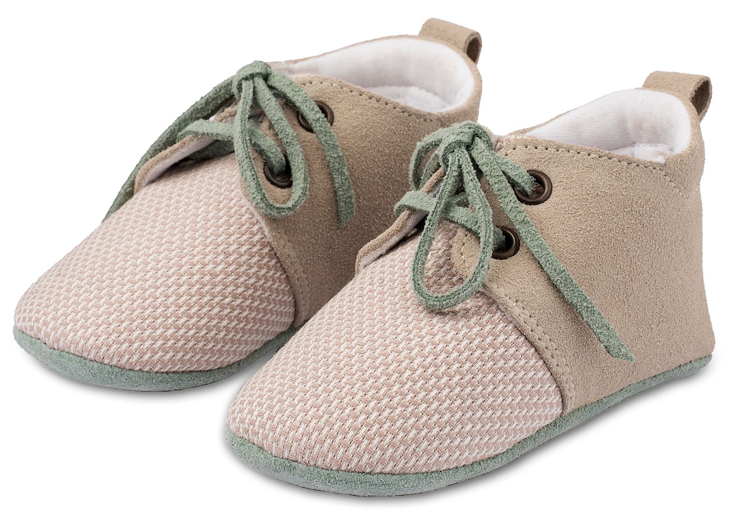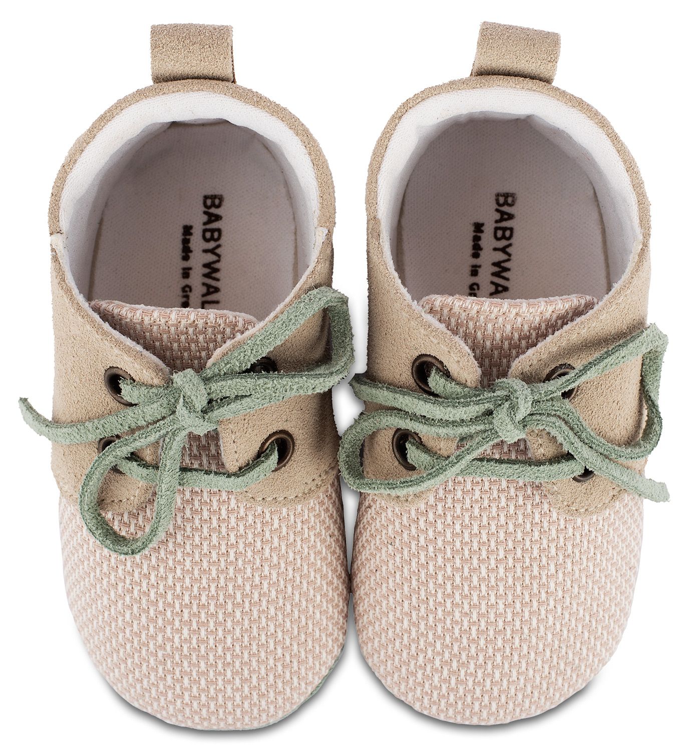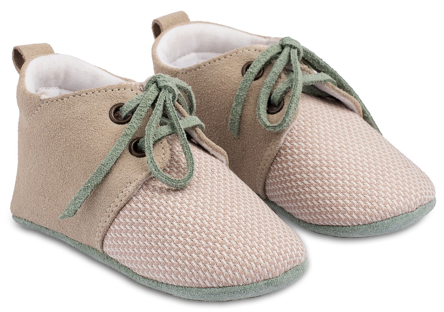 Δίχρωμο Δετό Σνίκερ από Δέρμα και Ύφασμα σε Μπεζ Μέντα Χρώμα