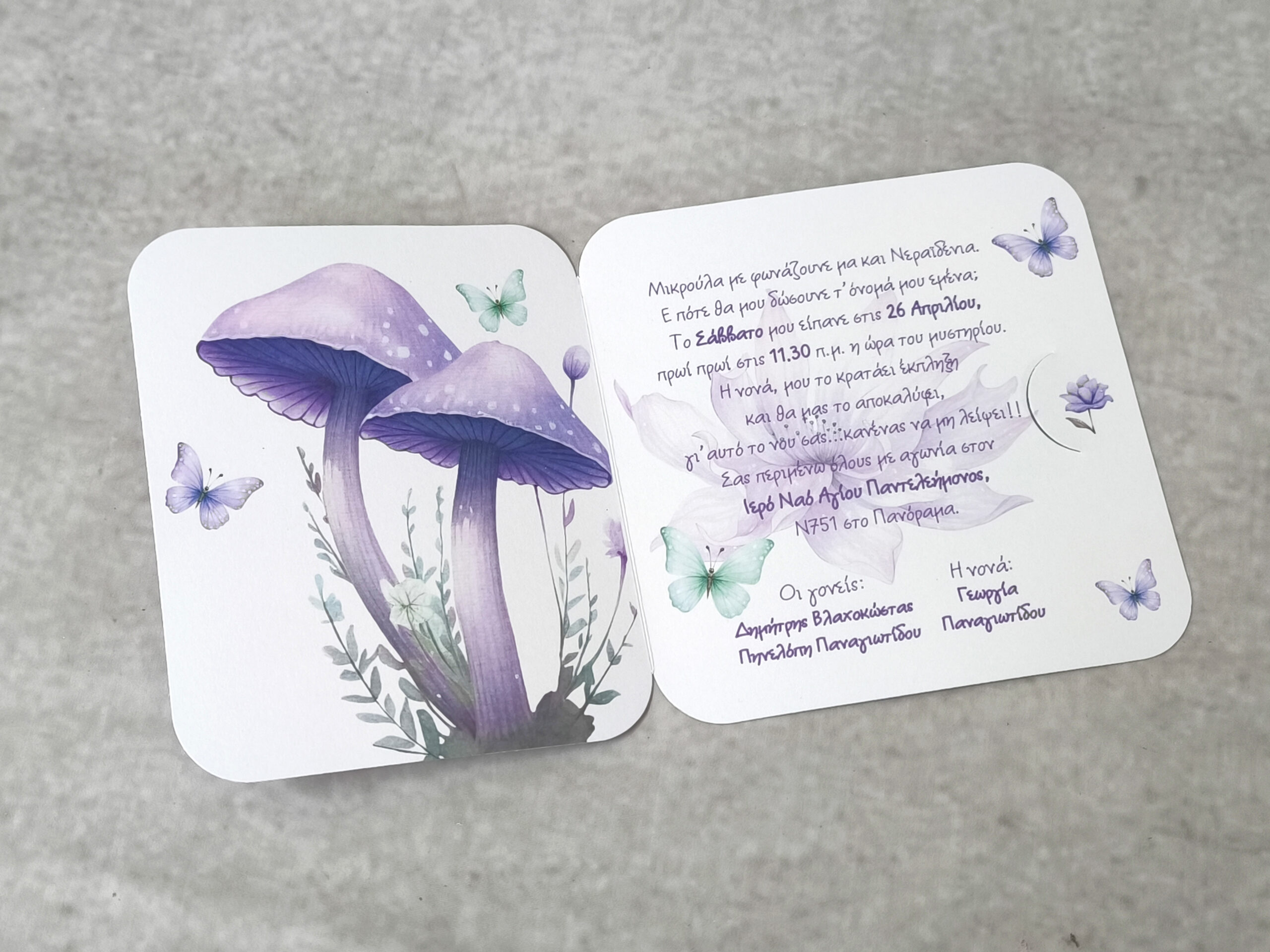 Θεματική πρόταση βάπτισης με θέμα νεραϊδόκοσμος σε λιλά απόχρωση.