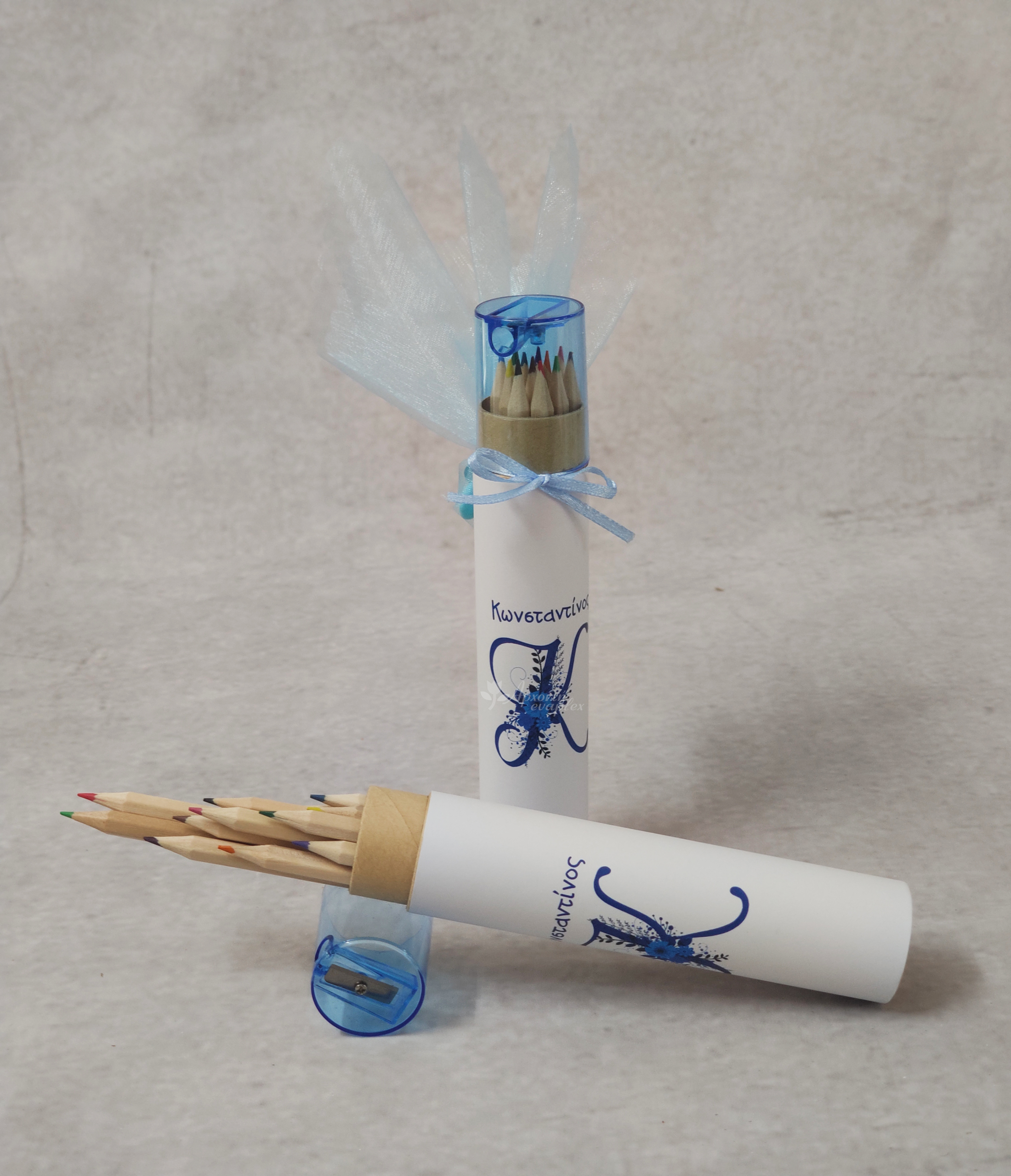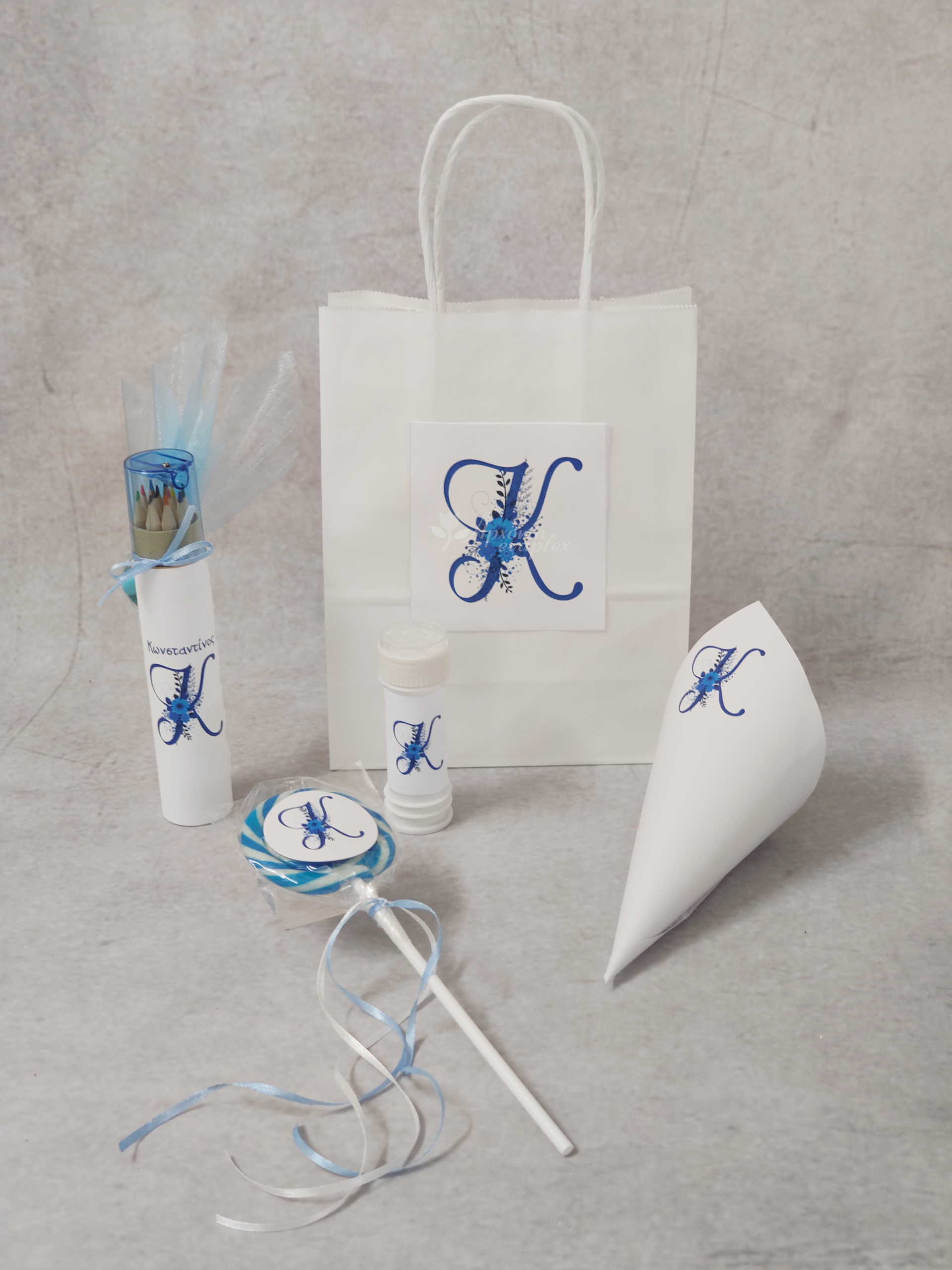 Θεματική πρόταση βάπτισης με μονόγραμμα σε μπλε αποχρώσεις.