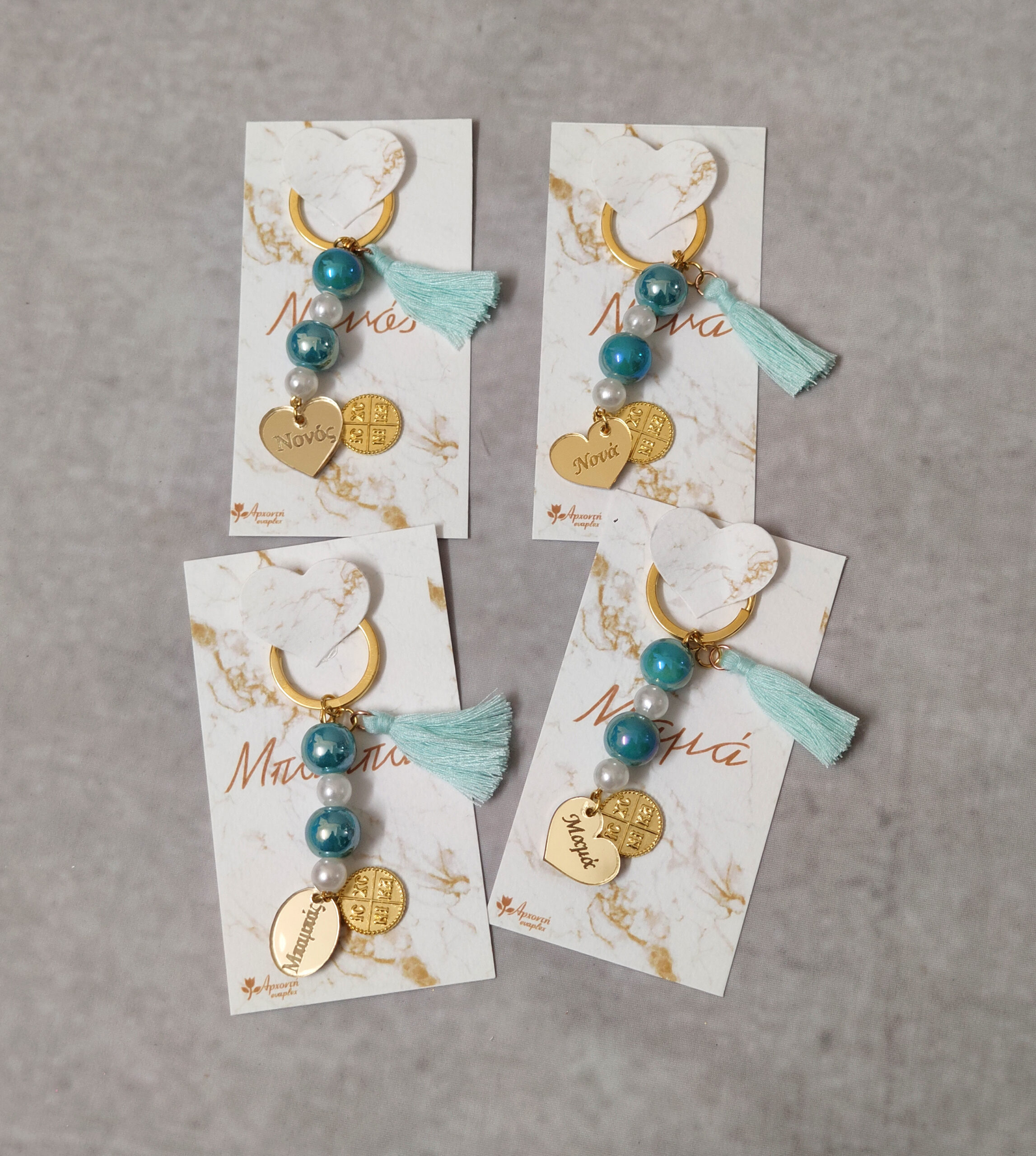 Μαρτυρικά μπρελόκ Μαμά – Νονά με κωνσταντινάτο σε εκτυπωμένο καρτελάκι με τα ίδια στοιχεία.