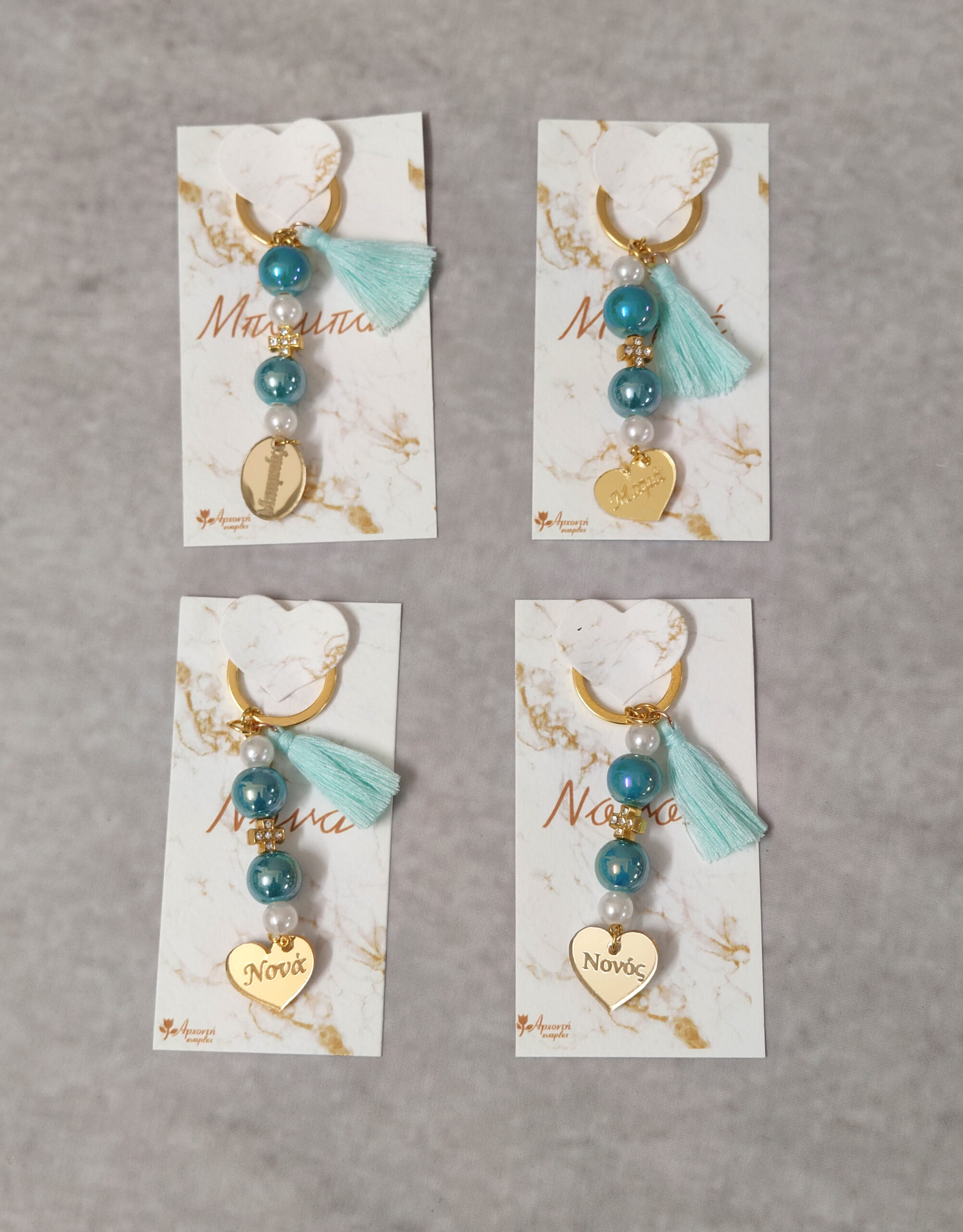 Μαρτυρικά μπρελόκ Μαμά - Νονά σε εκτυπωμένο καρτελάκι με τα ίδια στοιχεία.