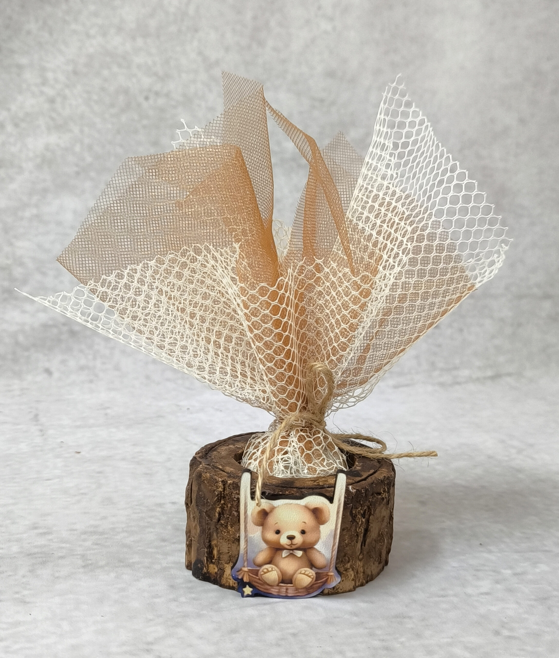 Μπομπονιέρα βάπτισης κεραμικό ρεσώ με διακόσμηση ξύλινο αρκουδάκι
