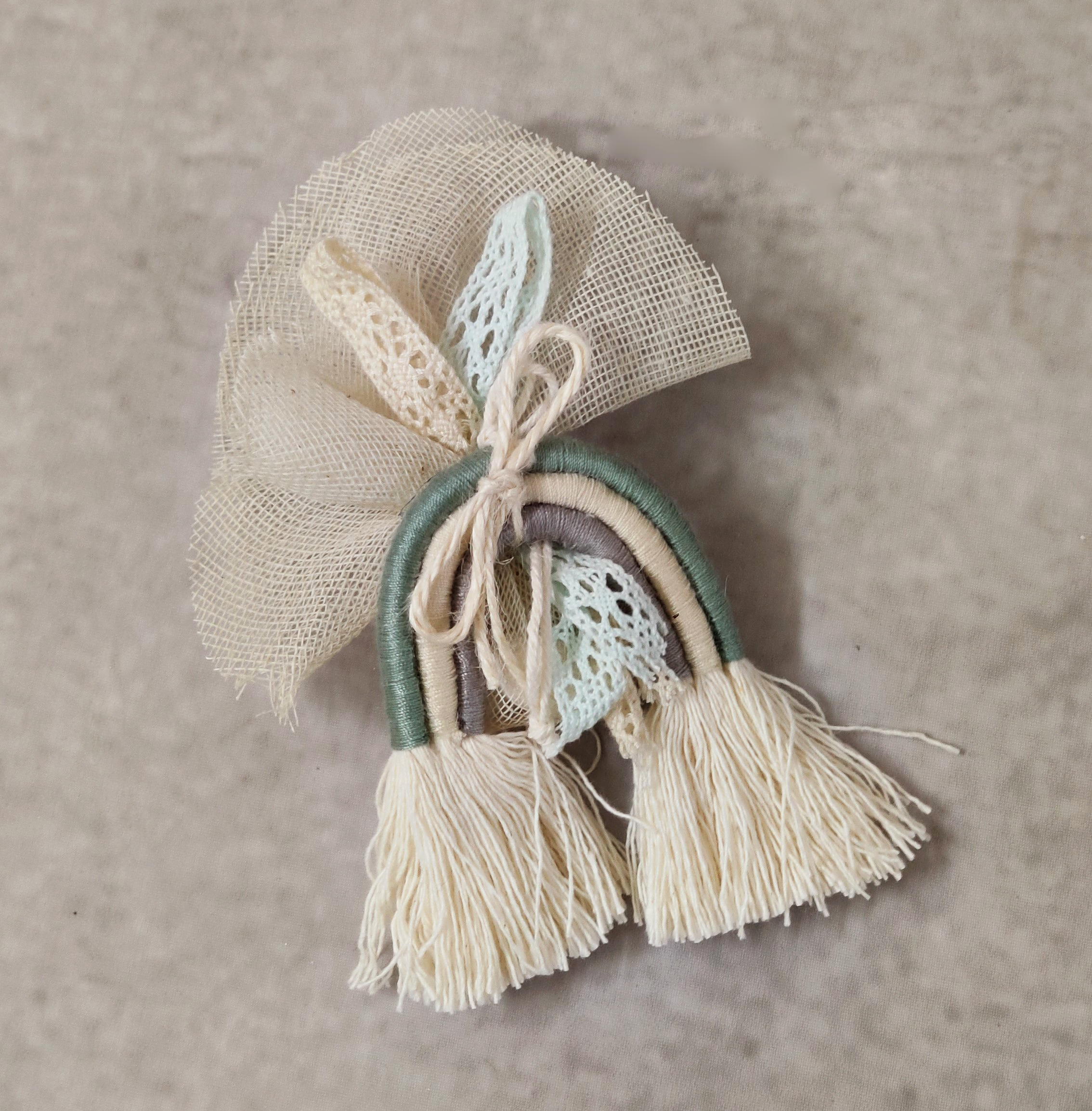 Boho μπομπονιέρα βάπτισης υφασμάτινο ουράνιο τόξο σε απόχρωση σάπιο μήλο.