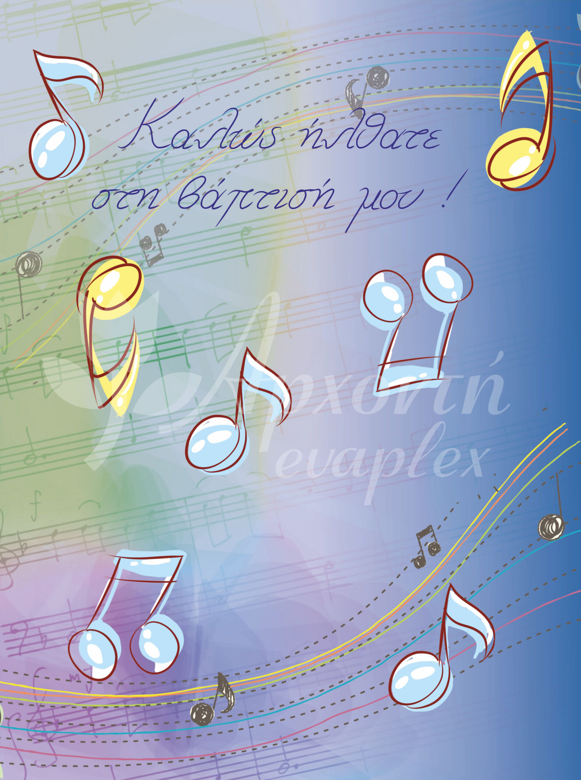 Σατέν υφασμάτινη αφίσα για στολισμό βάπτισης με θέμα μουσική, σε διάσταση 140 x 190 cm.
