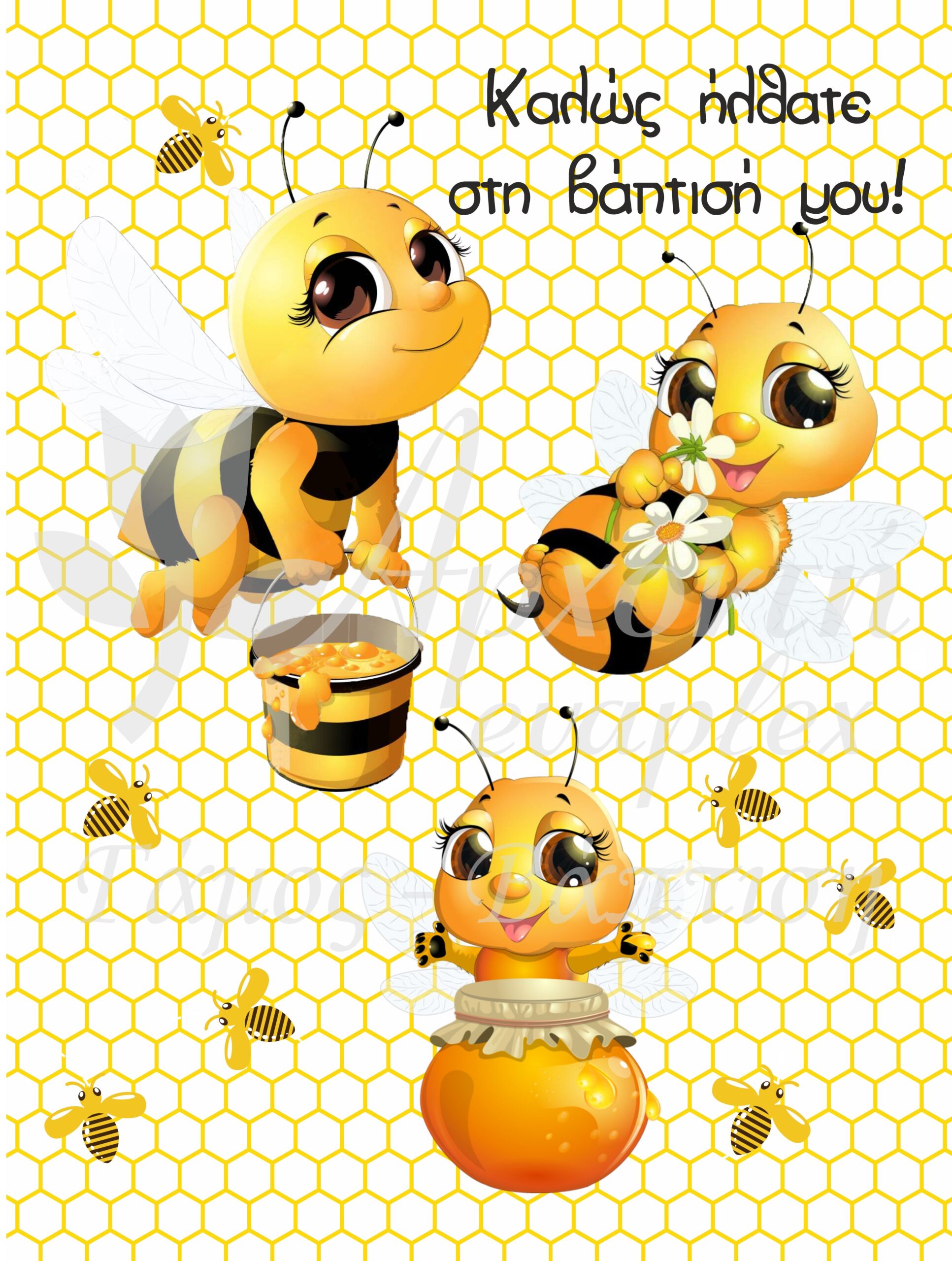 Το θέμα της αφίσας μπορεί να συνδυαστεί με άλλα προϊόντα βάπτισης, όπως προσκλητήρια, μπομπονιέρες, βιβλίο ευχών, σουπλά, χωνάκια, σημαιάκια κτλ.