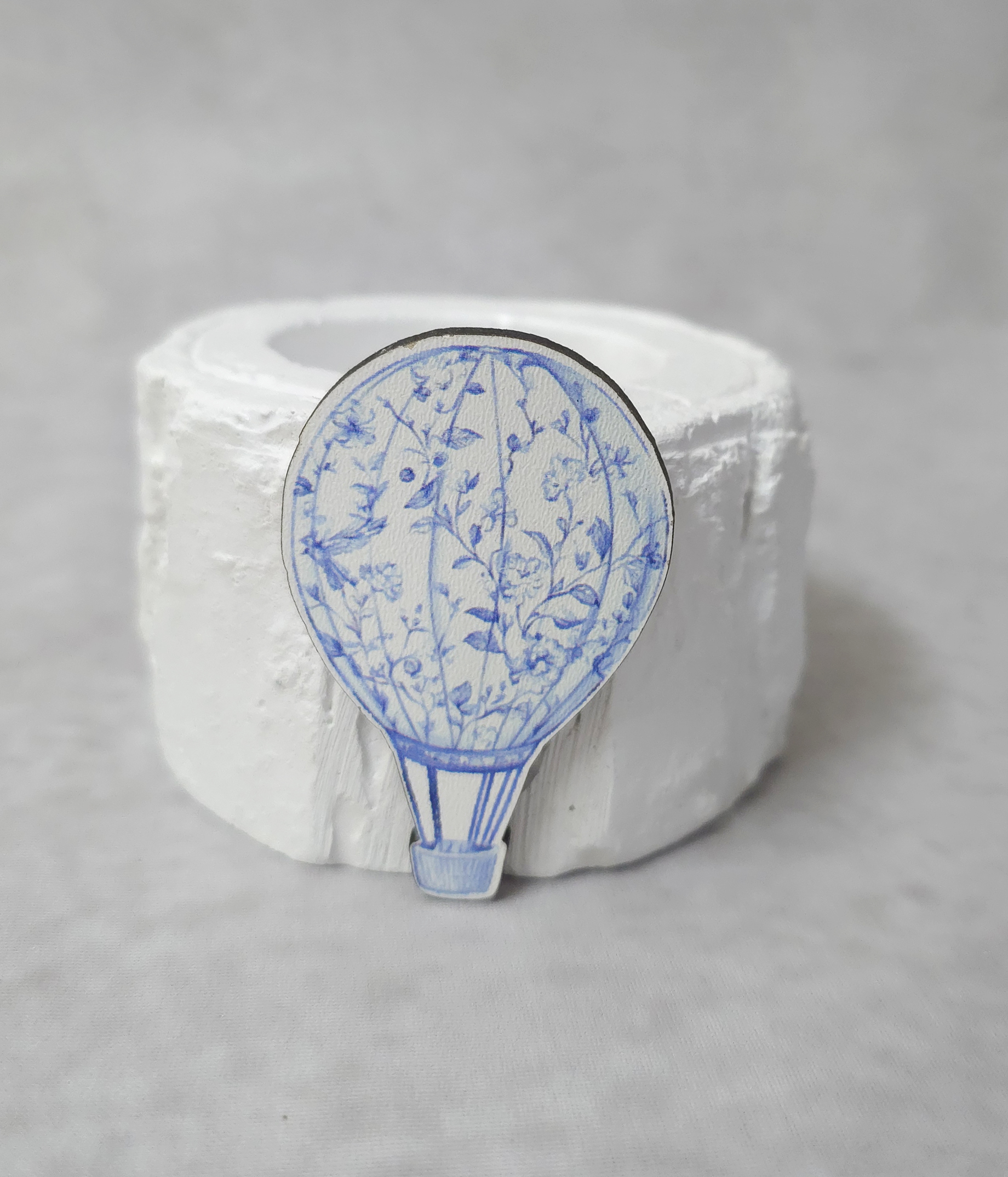 Μπομπονιέρα Κεραμικός κορμός ρεσώ με ξύλινη εκτύπωση αερόστατο ροζ Toile de Jouy