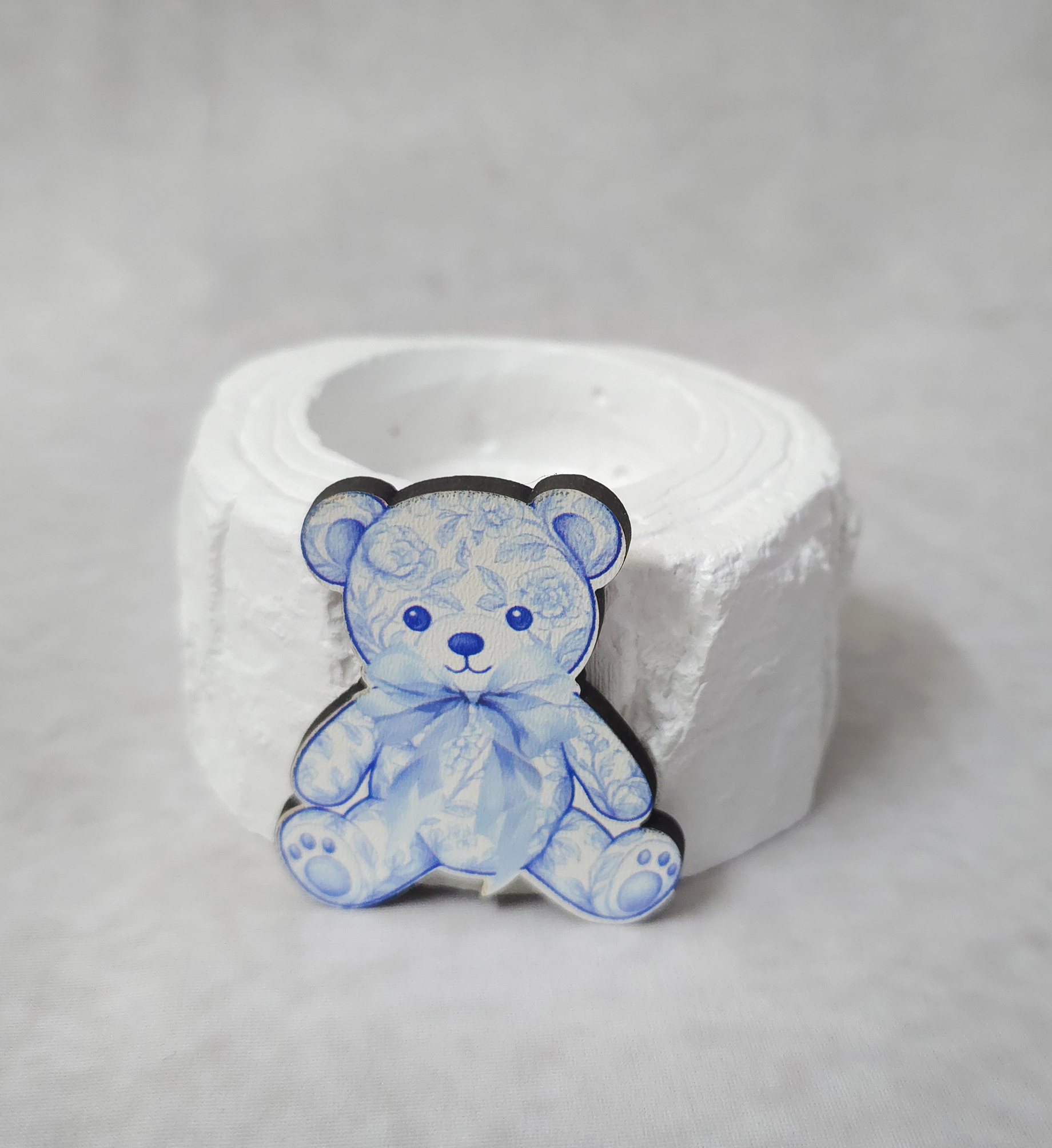 Μπομπονιέρα Κεραμικός κορμός ρεσώ με ξύλινη εκτύπωση αρκουδάκι μπλε Toile de Jouy