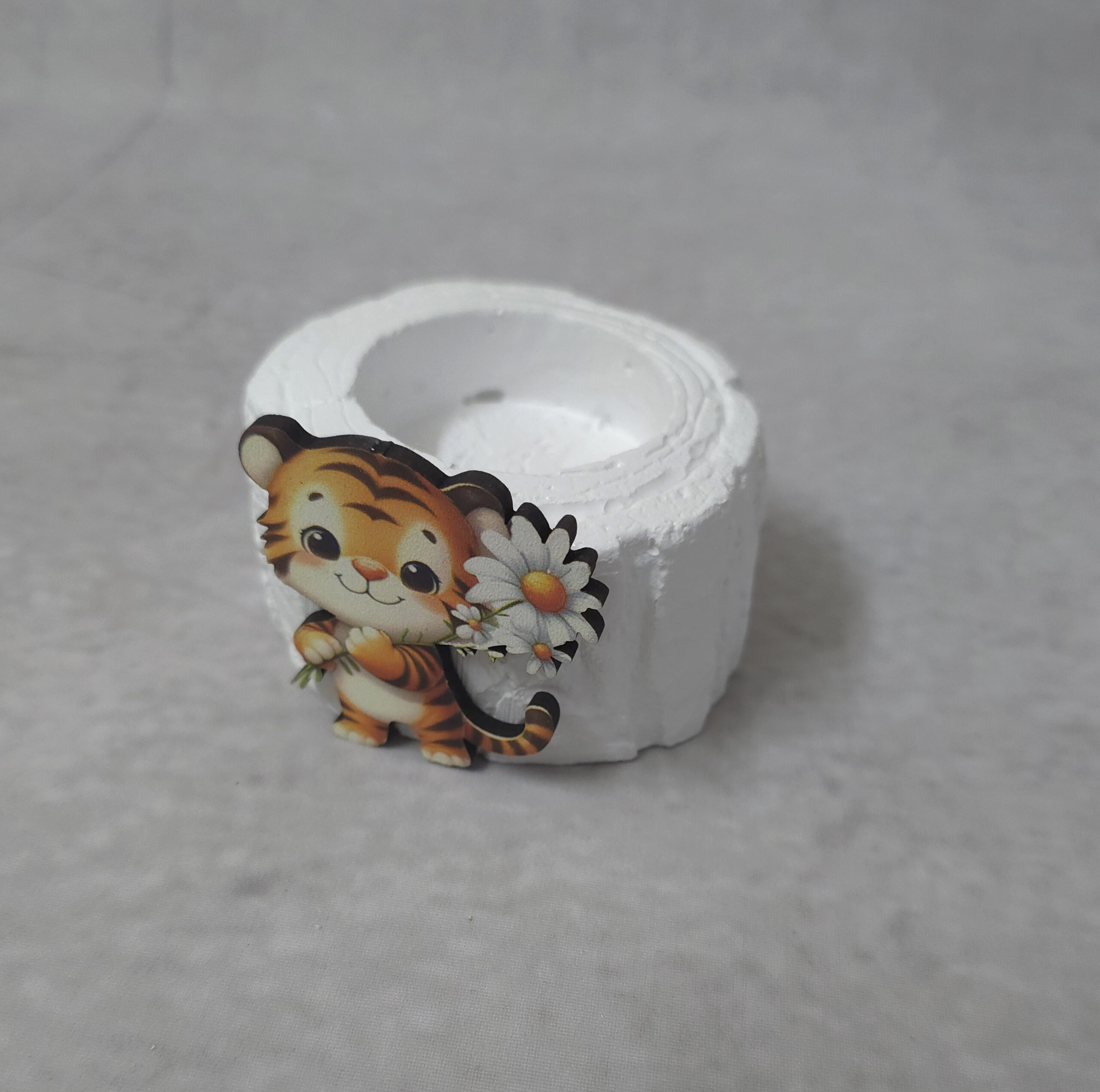 Μπομπονιέρα Κεραμικός κορμός ρεσώ με ξύλινη εκτύπωση τιγράκι