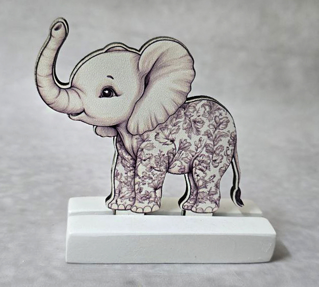 Μπομπονιέρα με Κεραμική βάση κιτ-κατ, με ξύλινο εκτυπωμένο ελεφαντάκι καφέ, Toile de Jouy ύφος