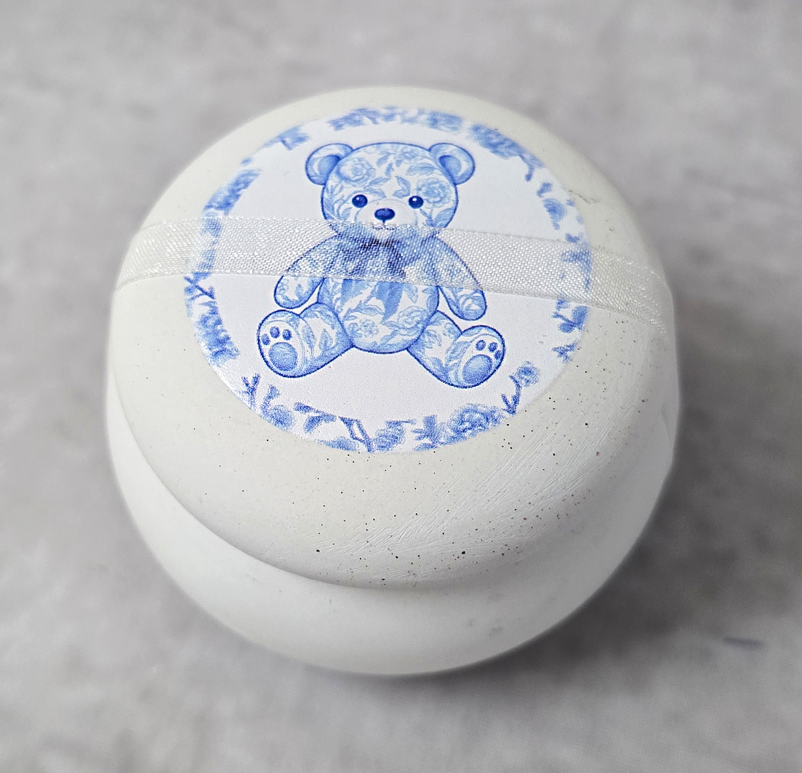 Κεραμικό μακαρόν με εκτύπωση αρκουδάκι μπλε Toile de Jouy