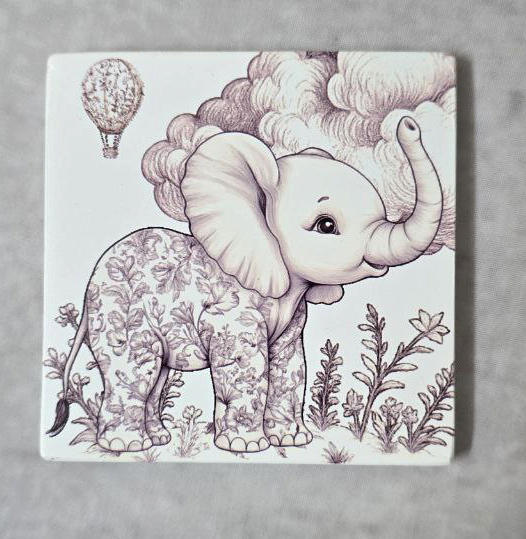 Κεραμικό σουβέρ με εκτύπωση σαφάρι σε κομψό στυλ Toile de Jouy, που απεικονίζει ελεφαντάκι σε αποχρώσεις του καφέ. Ο κλασικός μονοχρωματικός σχεδιασμός, εμπνευσμένος από τη γαλλική διακοσμητική παράδοση, συνδυάζεται αρμονικά με παιχνιδιάρικο χαρακτήρα, δημιουργώντας ένα ιδιαίτερο και διαχρονικό αποτέλεσμα.