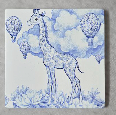 Κεραμικό σουβέρ με εκτύπωση σαφάρι σε κομψό στυλ Toile de Jouy, που απεικονίζει καμηλοπάρδαλη σε αποχρώσεις του μπλε. Ο κλασικός μονοχρωματικός σχεδιασμός, εμπνευσμένος από τη γαλλική διακοσμητική παράδοση, συνδυάζεται αρμονικά με παιχνιδιάρικο χαρακτήρα, δημιουργώντας ένα ιδιαίτερο και διαχρονικό αποτέλεσμα.