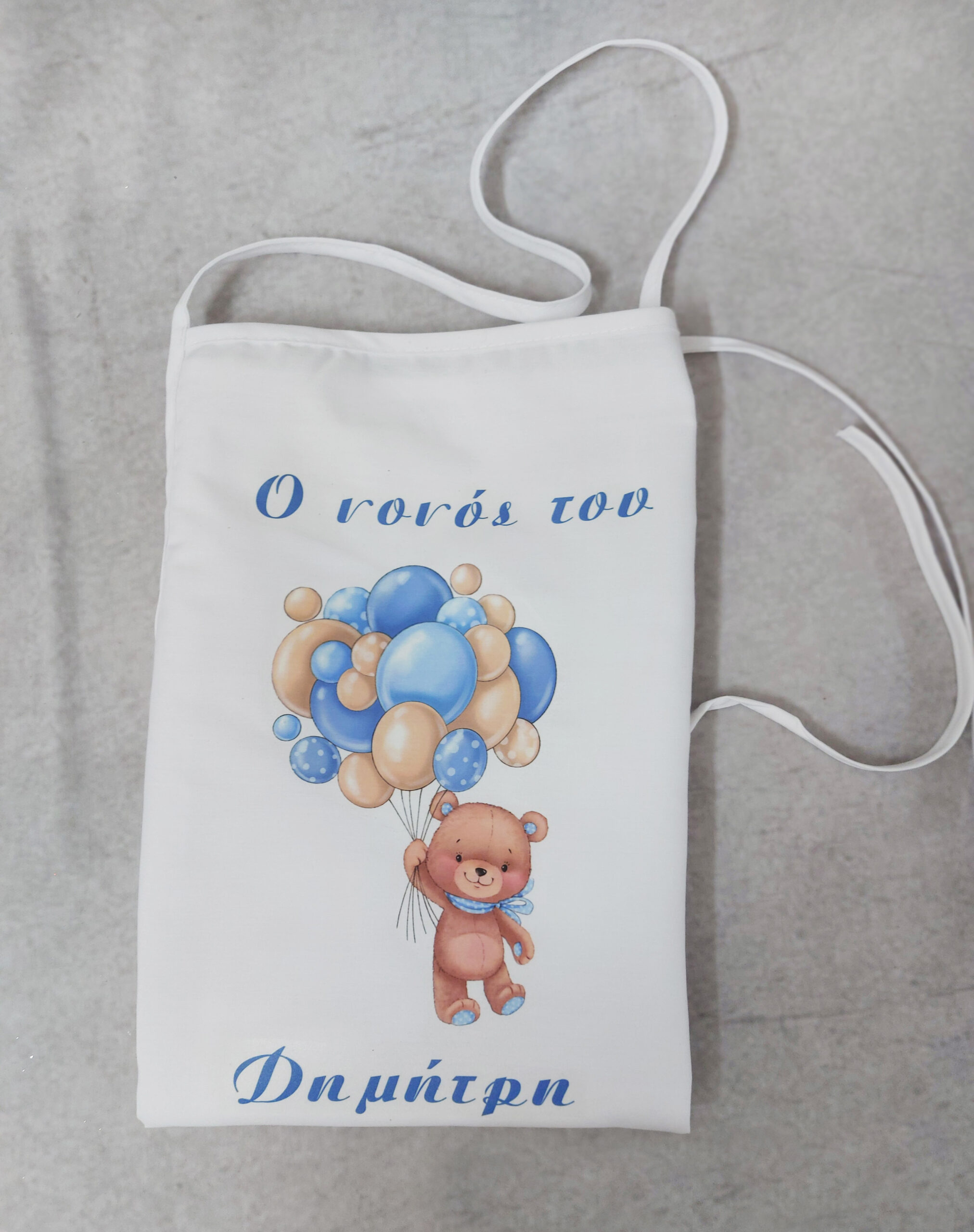 Λευκή ποδιά για νονό με θέμα αρκουδάκι.