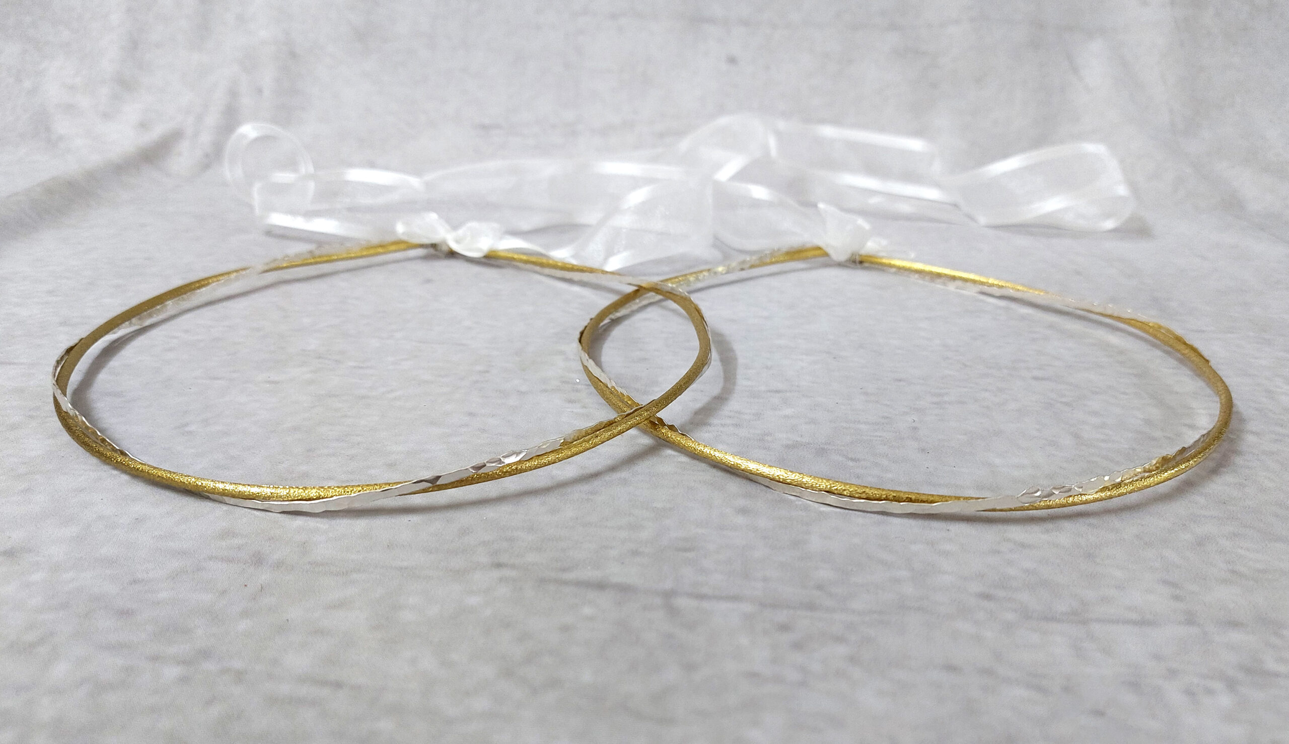Επάργυρα, επιπλατινωμένα στέφανα γάμου με διπλή βέργα, σε στρόγγυλη χρυσή διαμανταριστή και σε σφυρήλατη ασημί.
