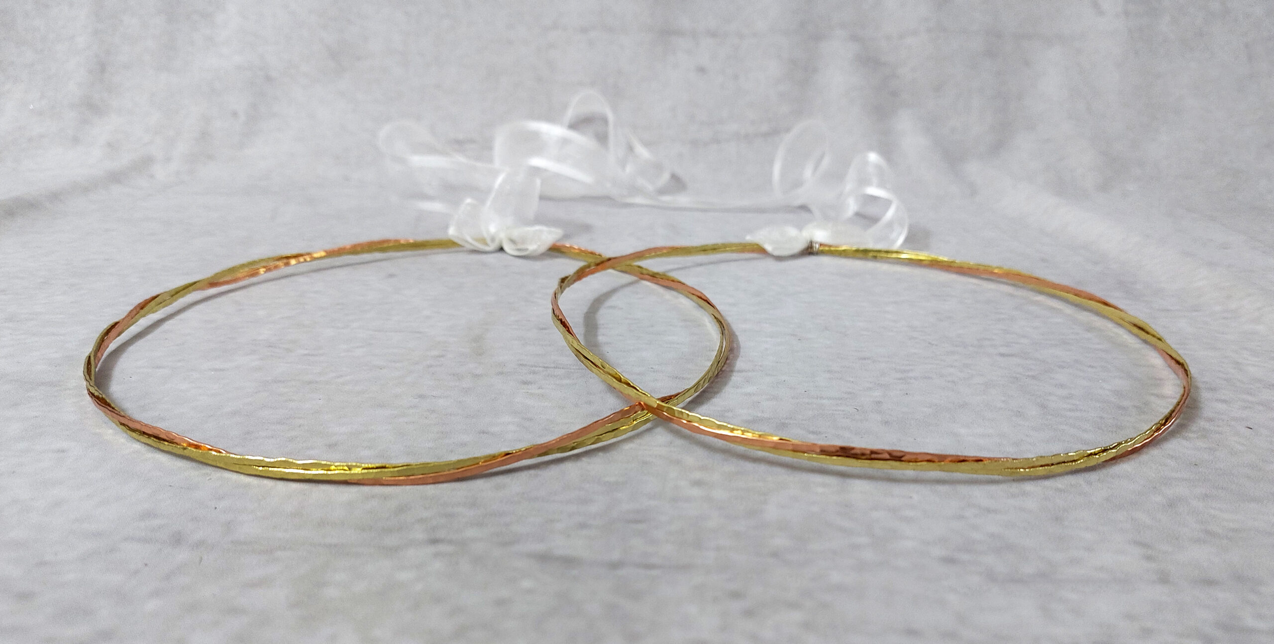 Επάργυρα, επιπλατινωμένα στέφανα γάμου με τριπλή βέργα, δυο χρυσές σφυρήλατες  και μια rose gold σφυρήλατη.