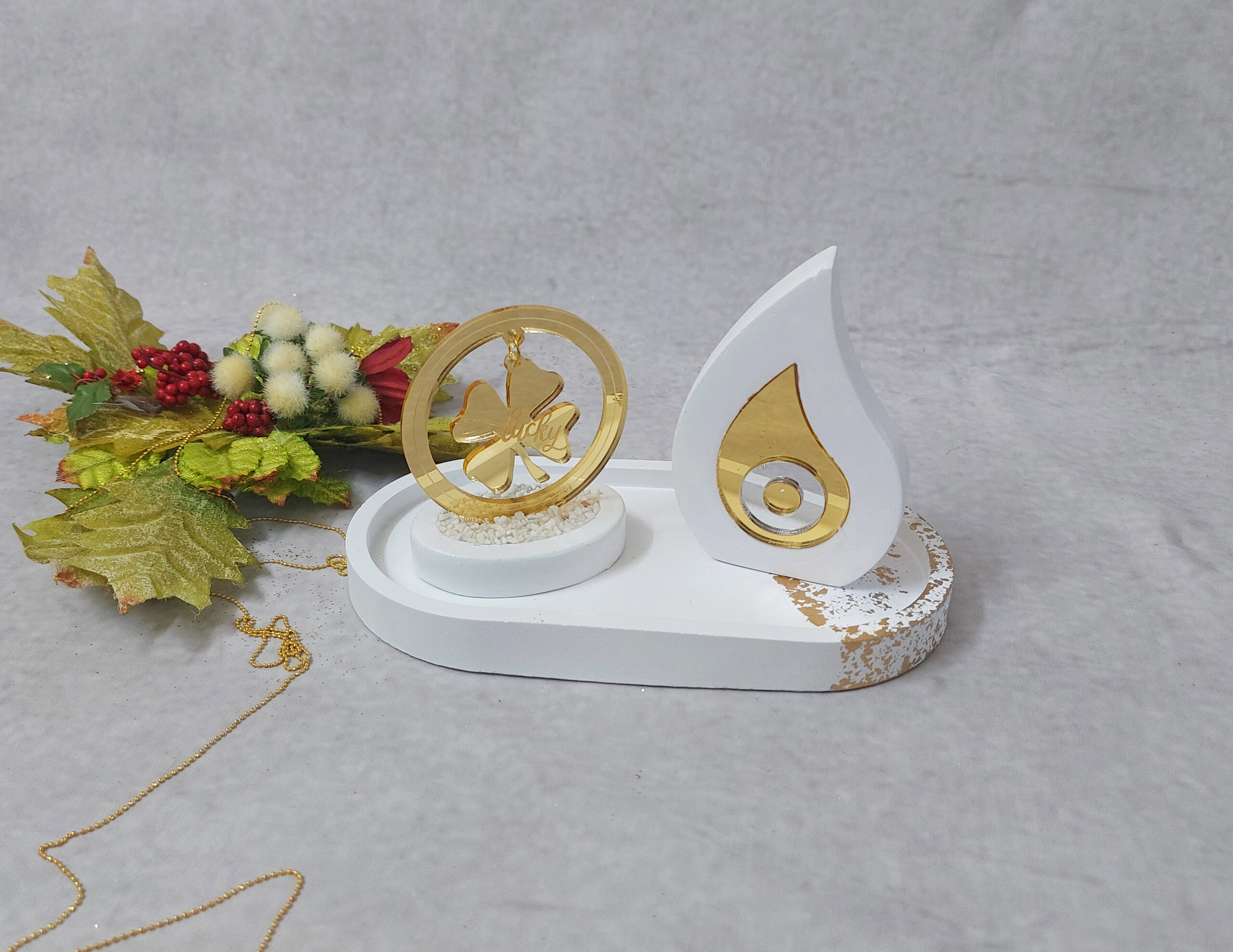 Χριστουγεννιάτικη σύνθεση με κεραμικό μάτι – σταγόνα και βότσαλο με τετράφυλλο
