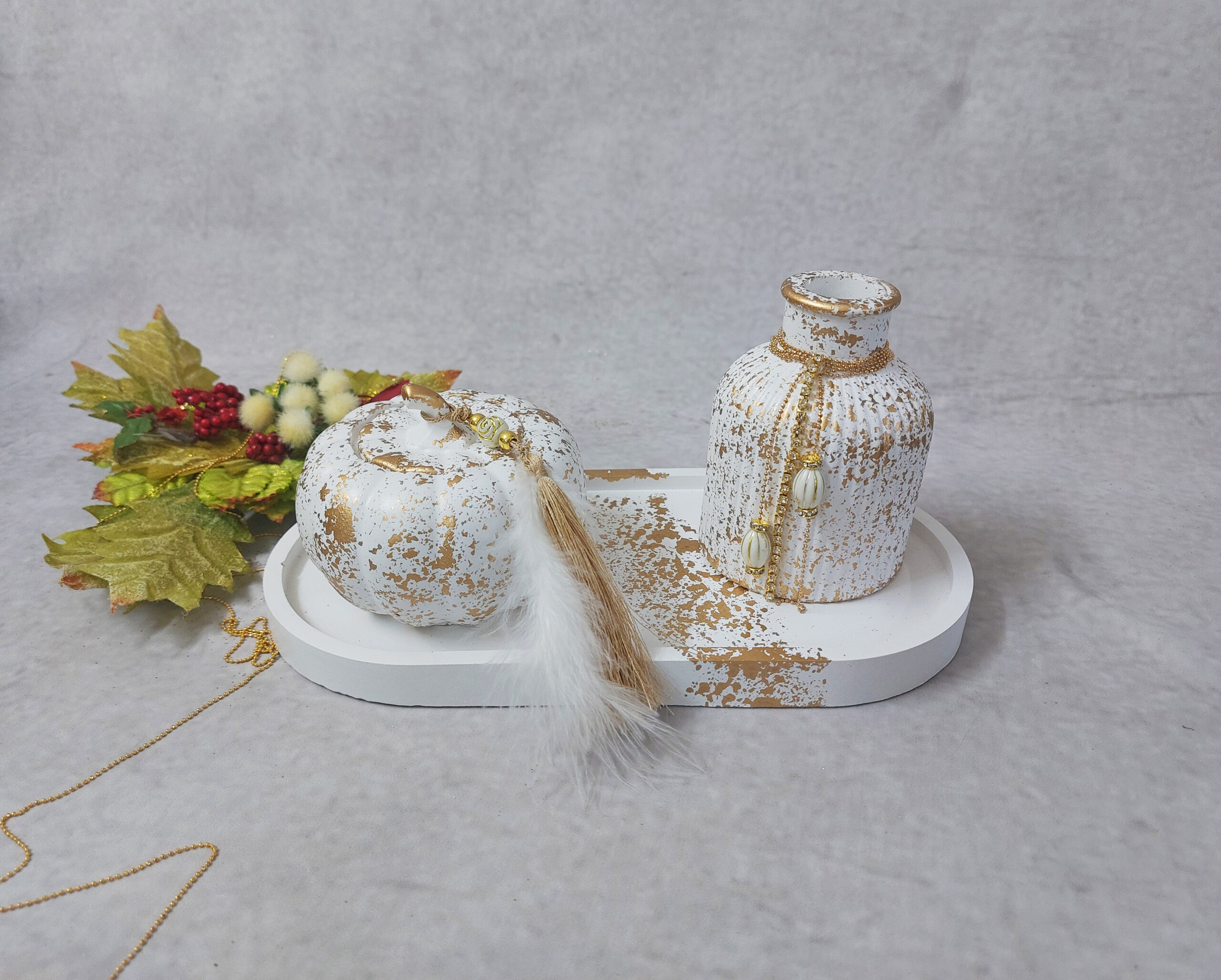 Χριστουγεννιάτικη σύνθεση με κεραμικό κουτάκι κολοκύθα και ρόδι με χρυσό plexiglass