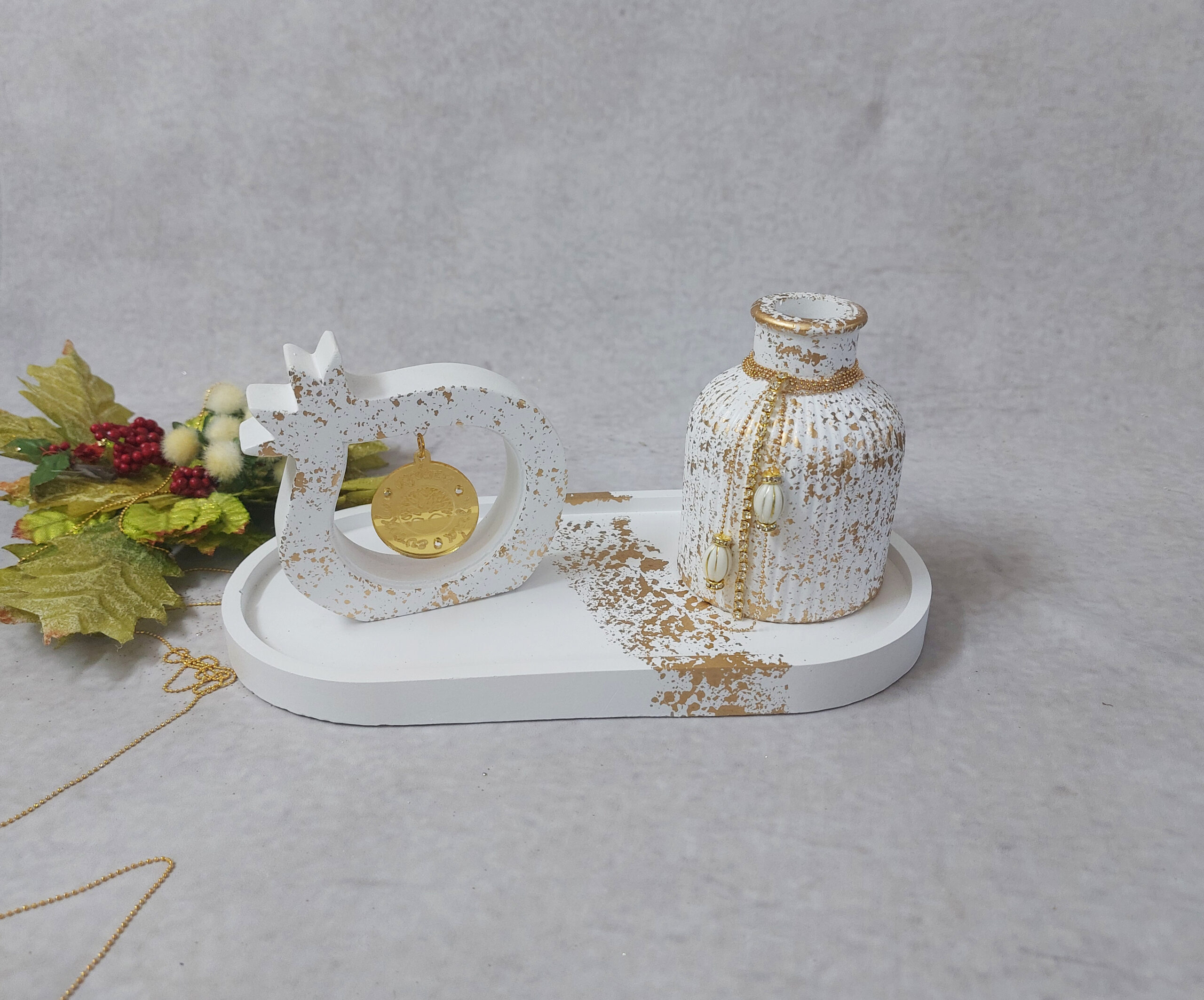 Χριστουγεννιάτικη σύνθεση με κεραμικό βαζάκι και ρόδι με χρυσό plexiglass