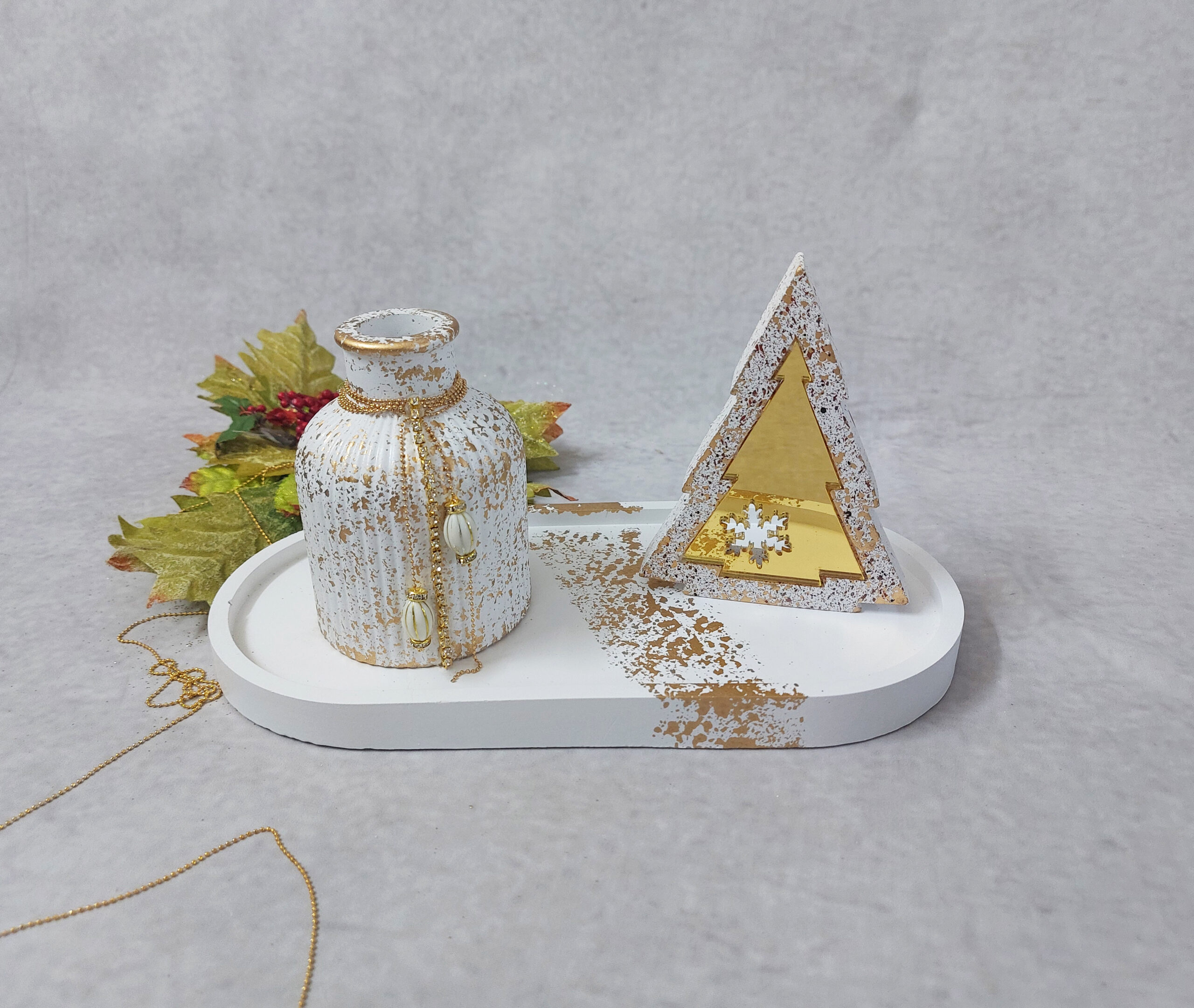 Χριστουγεννιάτικη σύνθεση με κεραμικό ρόδι με χρυσό plexiglass και σπιτάκι