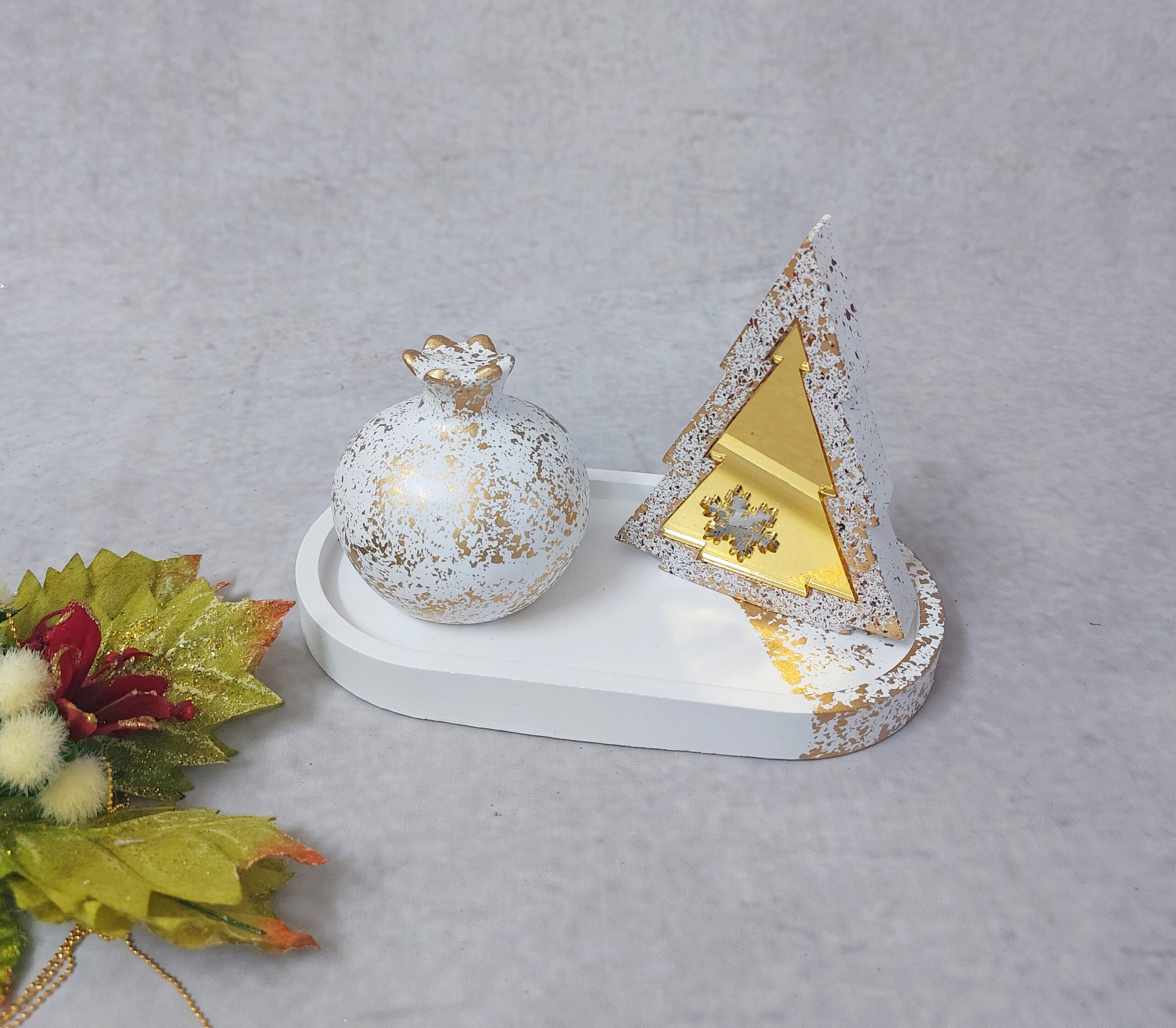 Χριστουγεννιάτικη σύνθεση με κεραμικό ρόδι και δεντράκι με χρυσό plexiglass