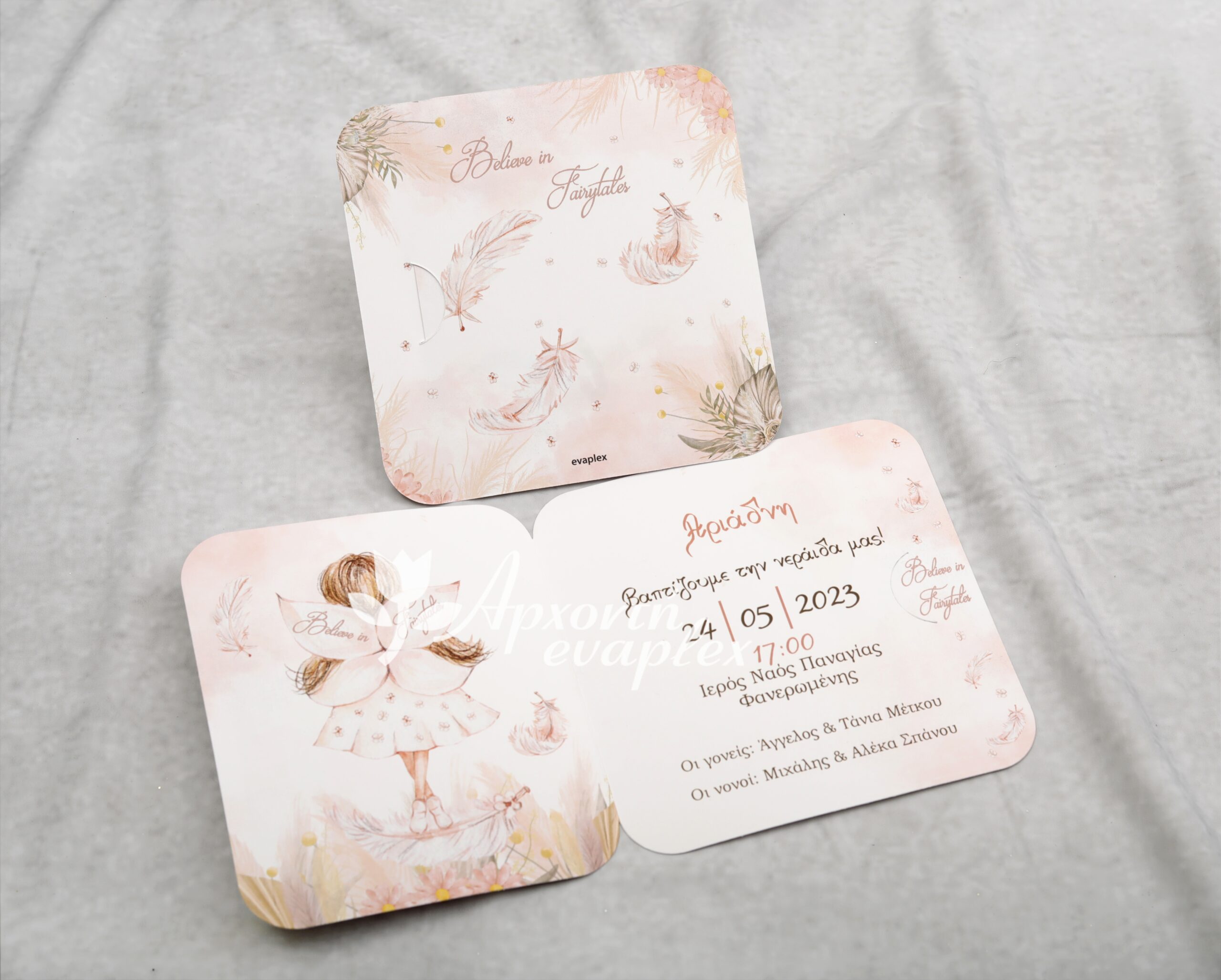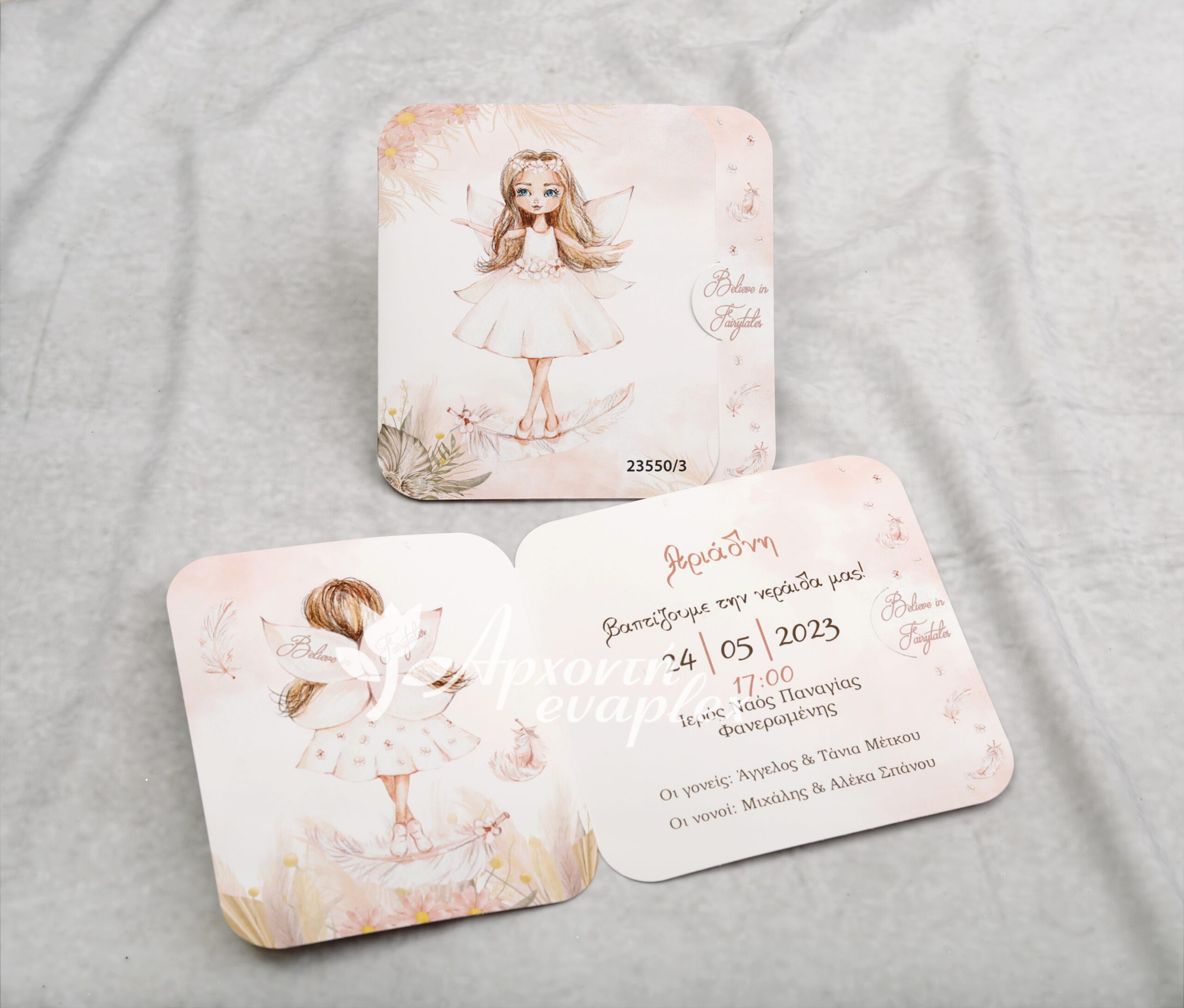 Προσκλητήριο βάπτισης με θέμα νεράιδα.