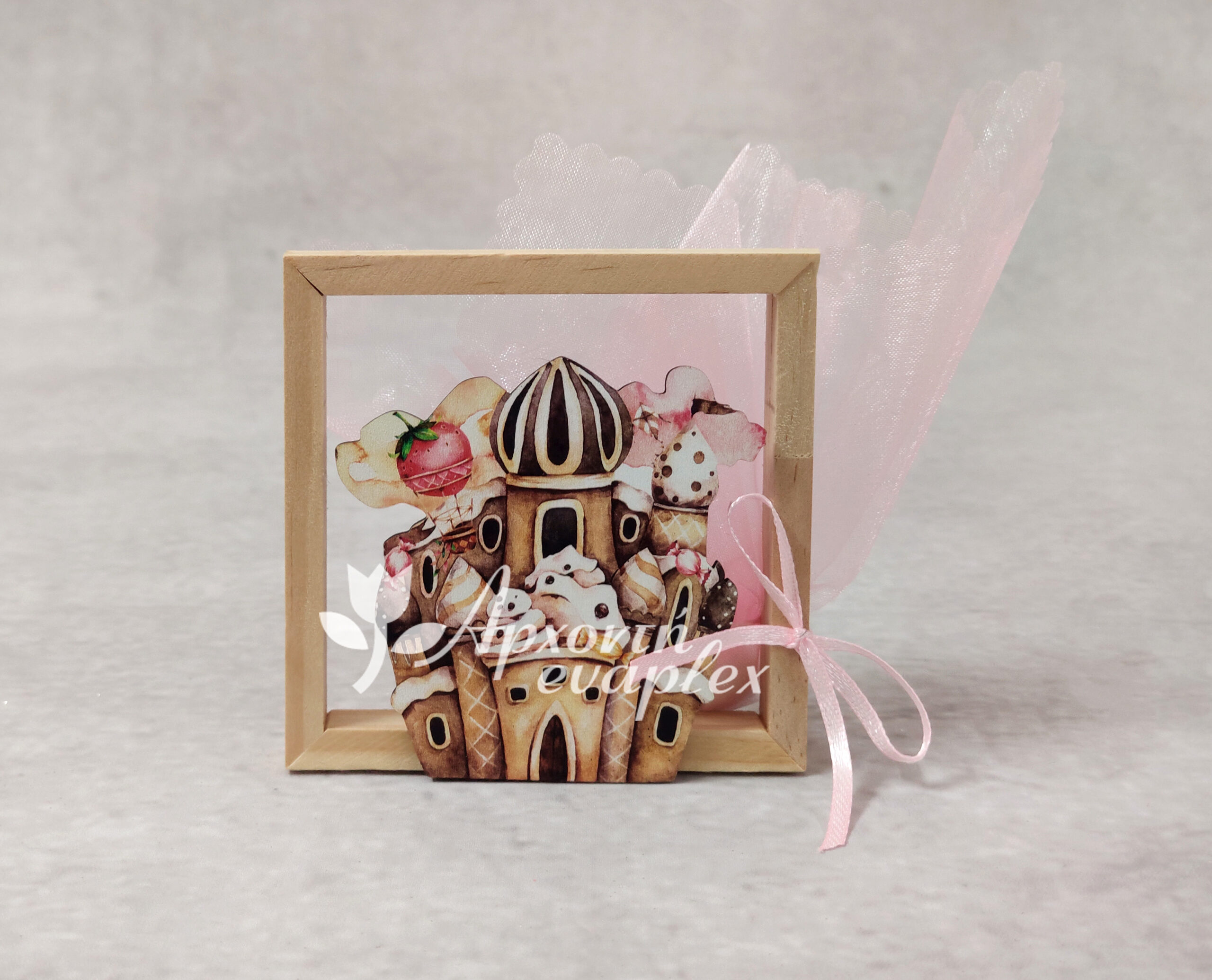 Μπομπονιέρα βάπτισης ξύλινο καδράκι με θέμα μπαλαρίνα