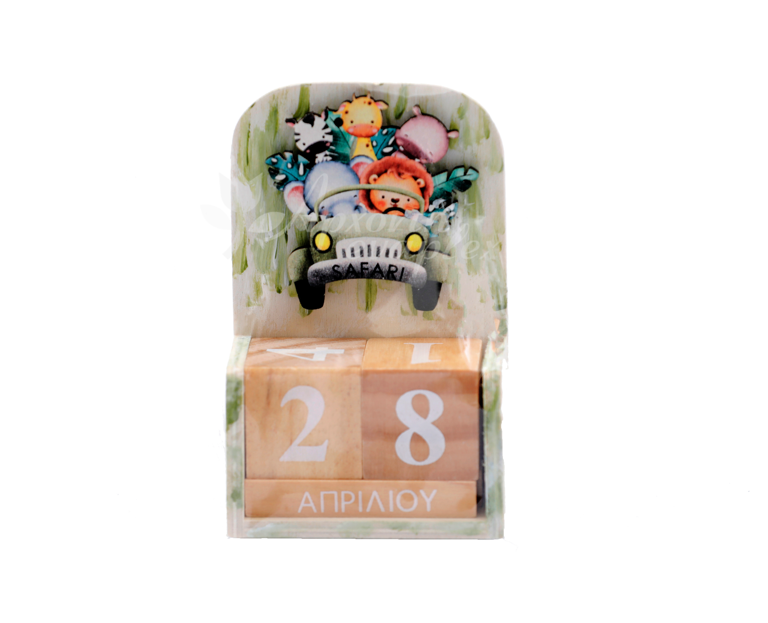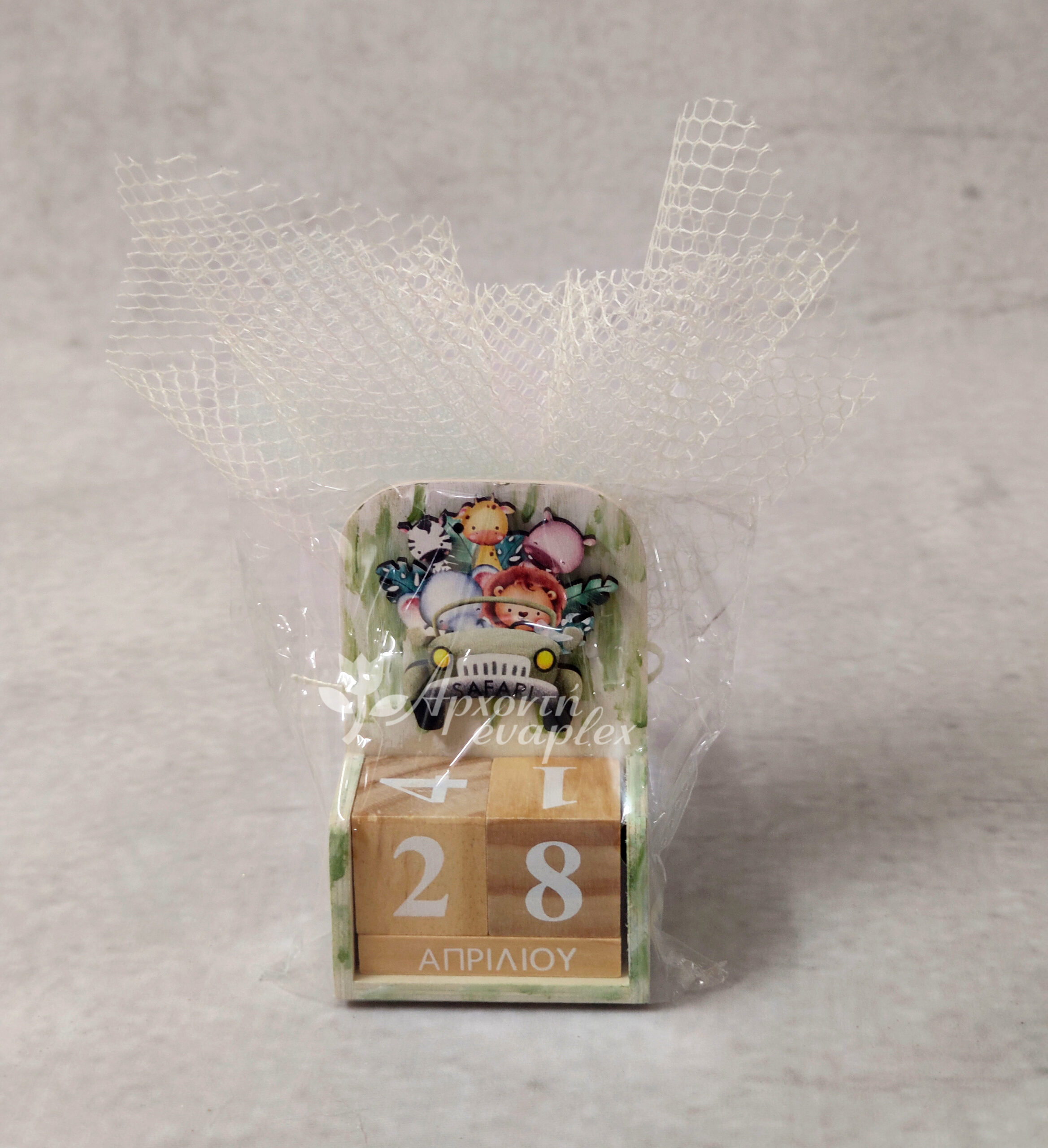 Μπομπονιέρα βάπτισης ξύλινο ημερολόγιο με θέμα Safari