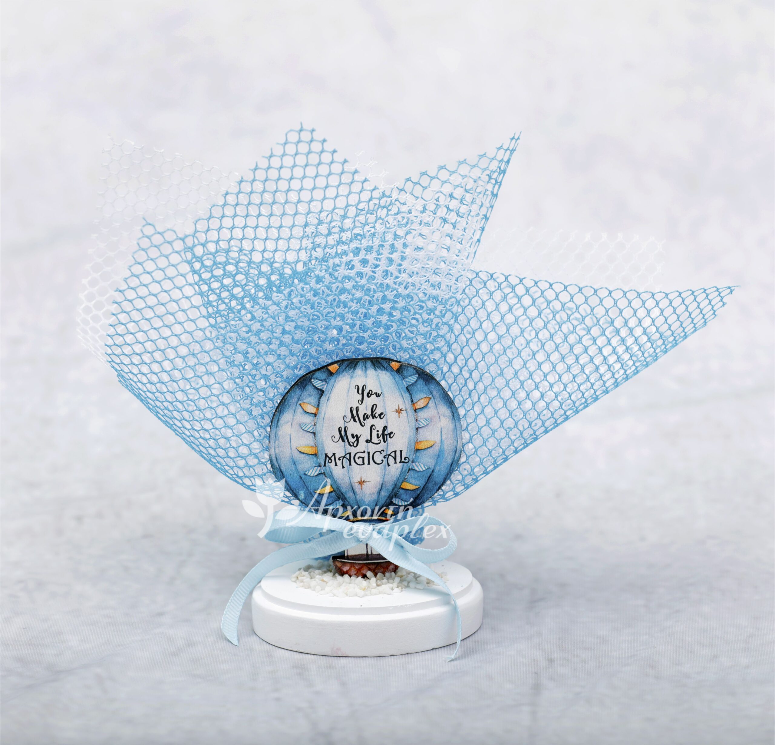 Μπομπονιέρα βάπτισης Safari ξύλινη, σε κεραμικό κορμό