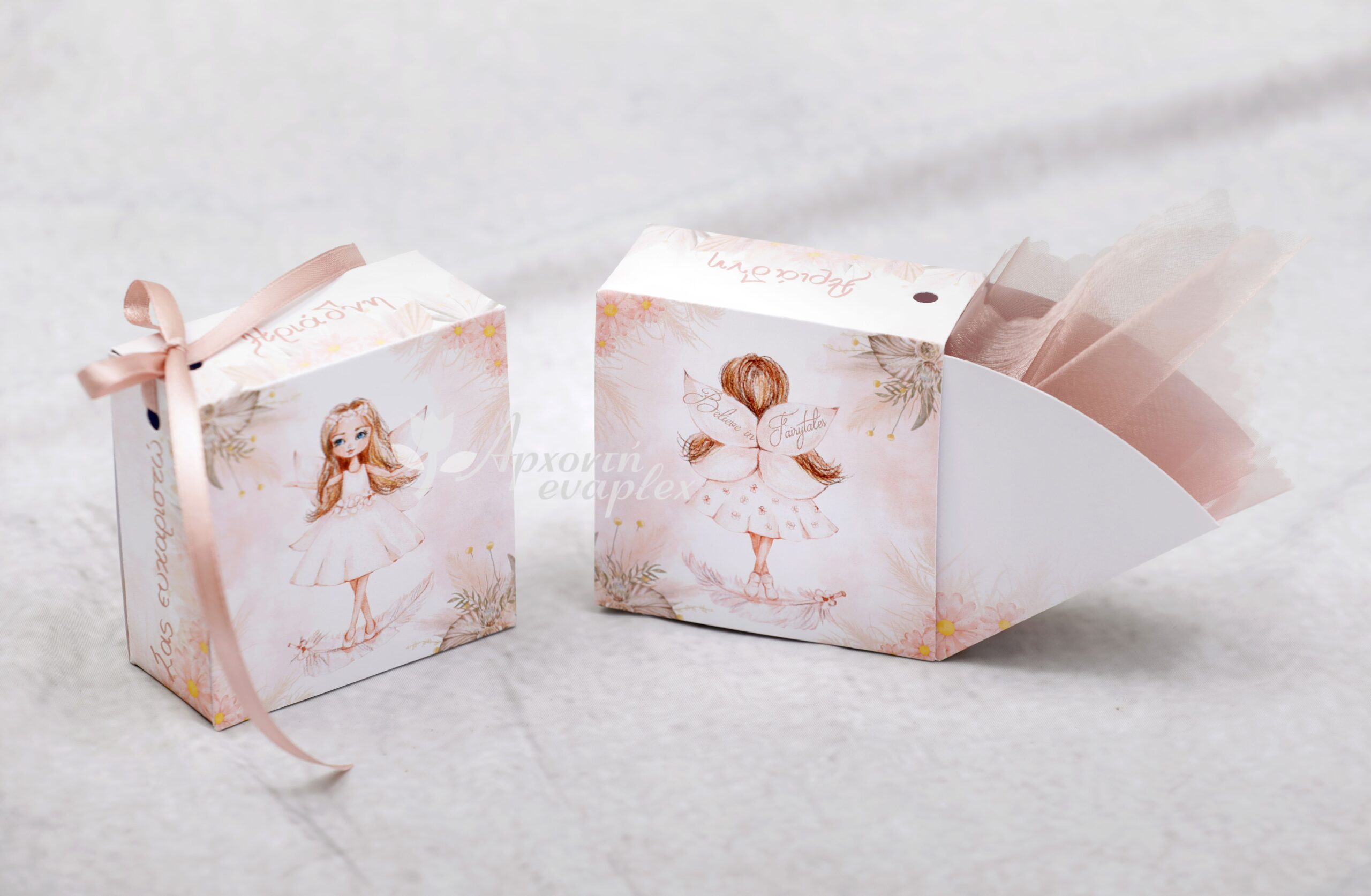 Μπομπονιέρα βάπτισης κουτί με θέμα Νεράιδα ή με θέμα της επιλογής σας, εκτυπωμένο περιμετρικά.