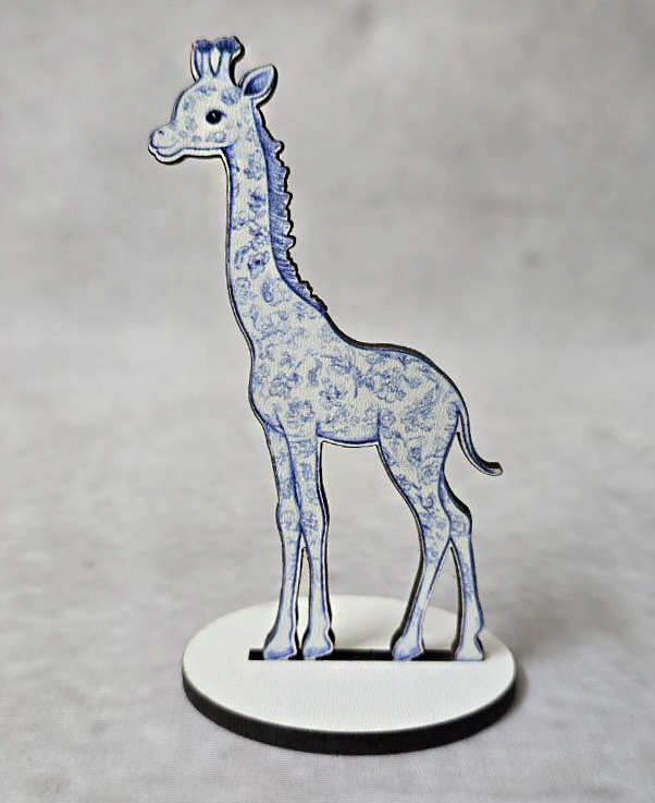 Ξύλινη μπομπονιέρα με βάση, σε κομψό στυλ Toile de Jouy, με σχέδιο καμηλοπάρδαλη σε απαλές μπλε και γαλάζιες αποχρώσεις. Ο μονοχρωματικός διάκοσμος με μοτίβα χαρίζει διαχρονική αισθητική, ενώ το γλυκό σχέδιο αποπνέει ζεστασιά και παιδική αθωότητα.